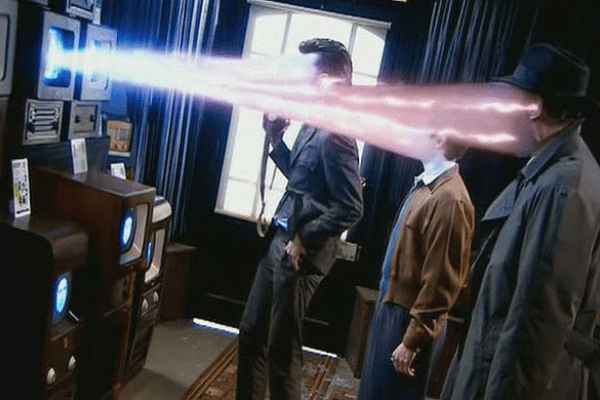 The episode presents its events through a curious framing device: the coronation of Queen Elizabeth II, which here serves as a deadline by which the Doctor must banish the monster of the week. The Wire ‘feeds’ via the television, sucking out the souls of the hapless viewers. In this way, Gatiss presents a kind of subversion of patriotism: an event that unites the country is presented as an opportunity for the villain to exploit. Between the Stepford-smiling Connolly family and the police coverup of the Wire’s victims, a more tangible theme emerges of ‘keeping up appearances’ – which, again, fits well with Gatiss’ decision to centre the episode on a critique of stereotypical ‘50s suburbia, though I think he could and should have pushed this idea further. And more than that I’m mostly struck with a faint notion of ‘new technology bad’ in having the most TV-skeptic character be proven right, and in an amusingly on-the-nose way: